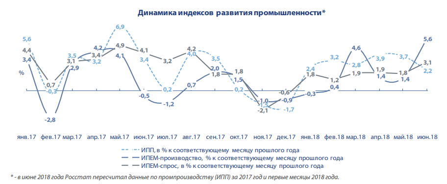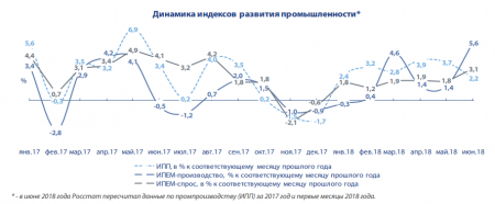 − индекс ИПЕМ-производство +5,6% (+2,3% за период январь - июнь 2018 года)