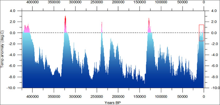Насколько я понимаю, мы сейчас на локальном максимуме температур находимся и вероятно скоро начнется очередной ледниковый период. А сторонники глобального потепления берут только последние 100 лет и пытаются этим обосновать свою позицию.