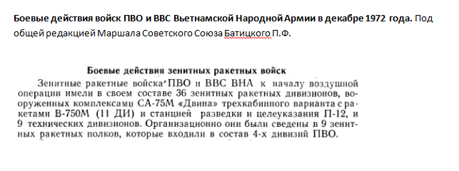 На начало операции «Лайнбекер-2» в составе ЗРВ ВНА находилось 36 ЗРДН. За 8 лет войны было безвозвратно потеряно 46 дивизионов. Только 24 из 36 находились в боеготовом состоянии, то есть 66,6%. В Ханойской и Хайфонской группировке боеготовых ЗРДН было 75 и 86% соответственно. Хуже всего обстояли дела в 4 военной зоне, где из 16 дивизионов боеготовых было только 8, то есть 50%. Эта группировка прикрывала коммуникации с Югом и подвергалась наиболее ожесточенным атакам американской авиации летом 1972 г. На протяжении этого года американская авиация уничтожила на стартовых позициях около 200 ракет, были периоды когда в результате одновременн6ых атак в небоеготовом (поврежденном) состоянии оказывалось до 50% всех ЗРК. О военных и политических результатах проведения этой стратегической воздушной наступательной операции широко известно. Правда, почему-то не в русскоязычном интернете. Можно только добавить, что при проведении этой операции, единственный раз в истории, самолеты САК США были отозваны с маршрута. Вьетнамцам удалось то, что не удалось ни немцам ни японцам. Ну а Ханой, уже на второй день, был объявлен городом с самой сильной ПВО в мире
