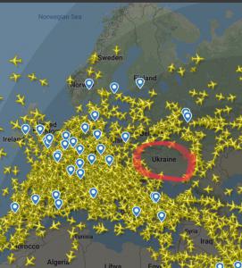 Прямо сейчас над украиной, кроме нескольких местных украинских самолетов(пара внутренних и один в Минск), пролетает один Осло-Израиль бочком, бочком, с краешку, и восемь Россия-Турция. Турки ради денег забили болт на безопасность.