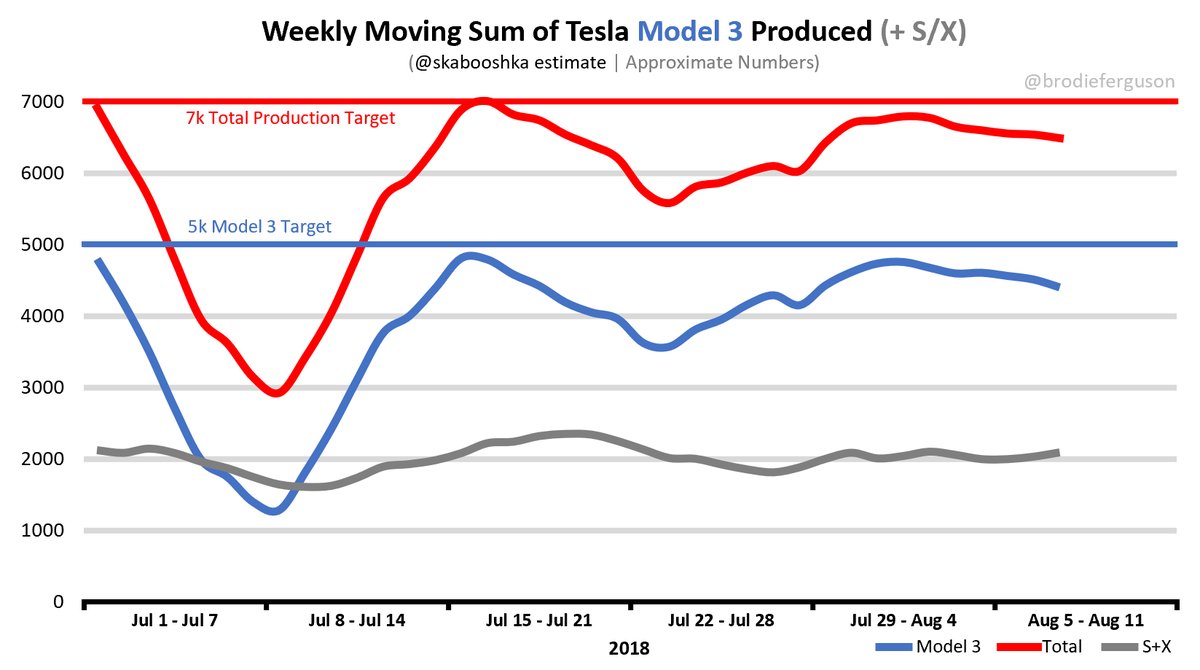 Как и предполагалось в последнюю неделю августа Маск не смог, и даже не стал пытаться, достичь фейковых темпов в 6000 штук.
