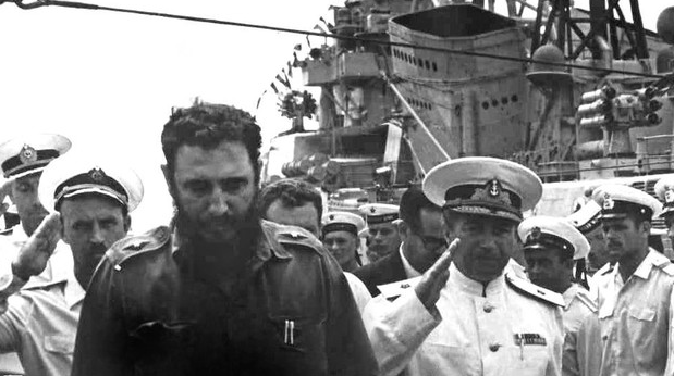 Ушаков и Фидель Кастро на борту "Грозного" (1969):