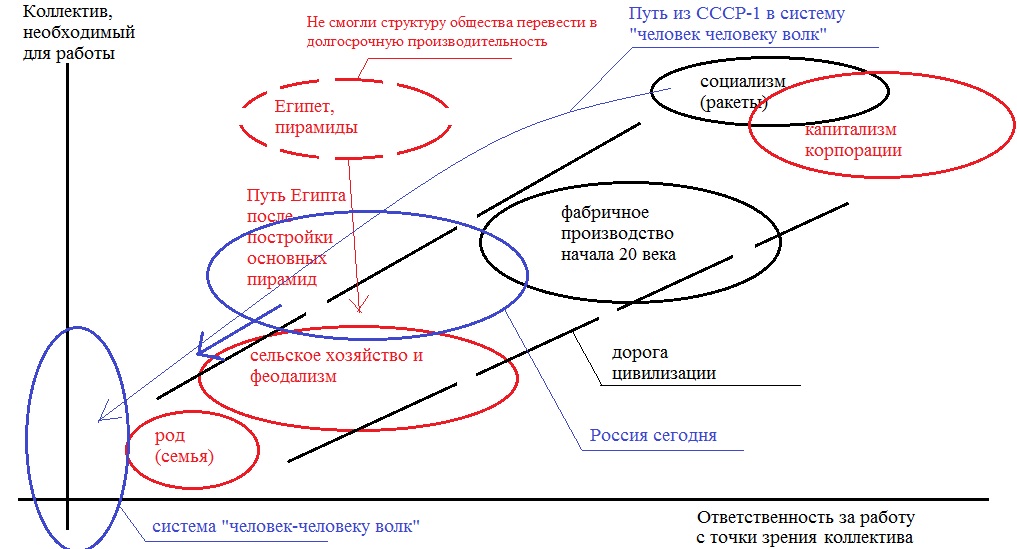 Я бы поменял местами капитализм и Египет. Потому как ответственность коллектива за работу в Египте была очень высокой, не выполнил работу - все дружно на переправу, к Харону. А в корпорациях всем тупо наср...ь, всегда можно свалить, если напортачили.