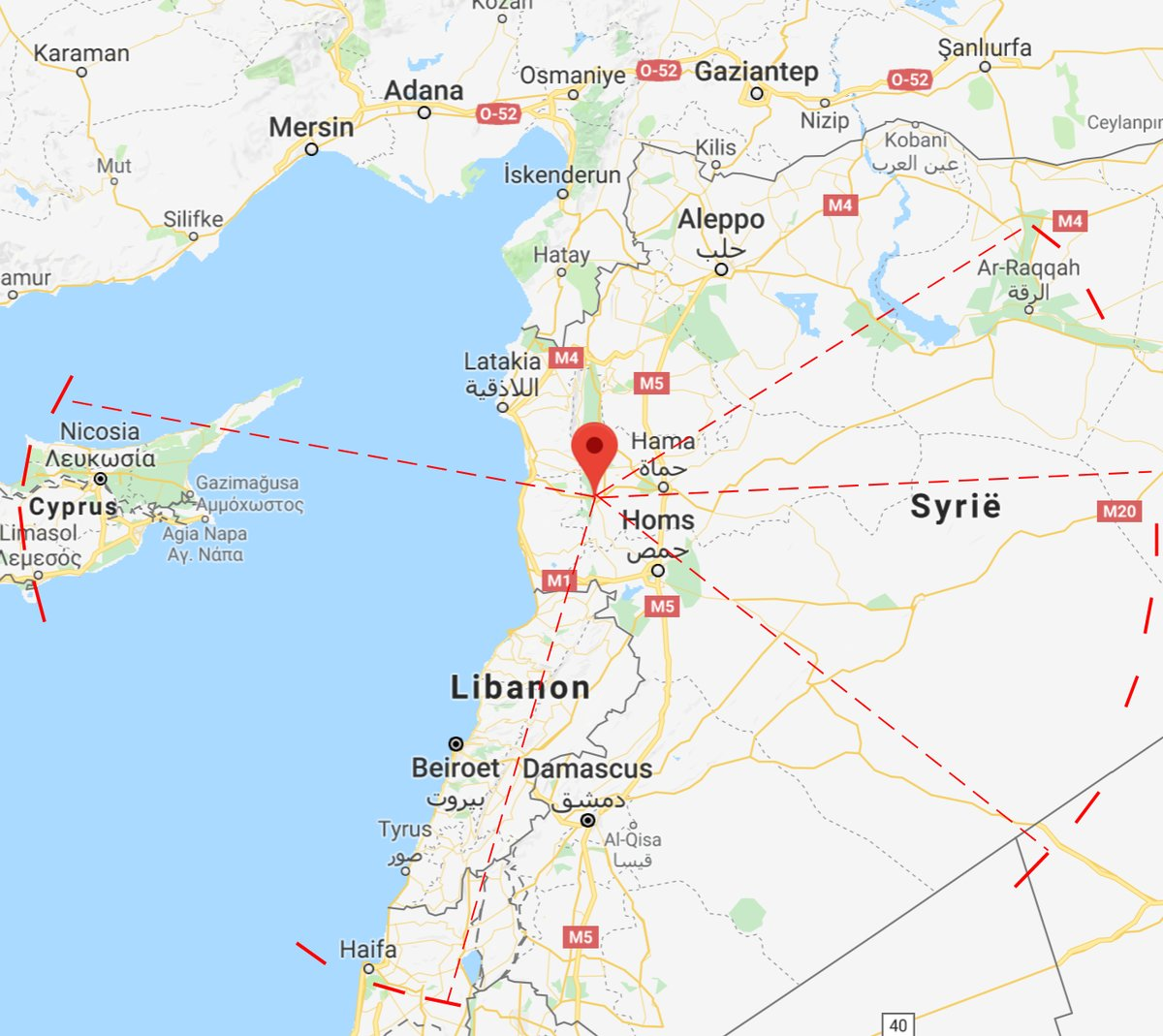 Могу ошибиться, но от Хомса не видно Хайфу, там Ливанские горы до 3000 м высотой.