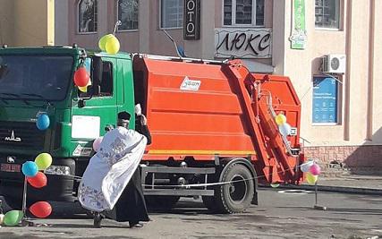 Это - галичанский поп, освящающий мусорник на колесах.