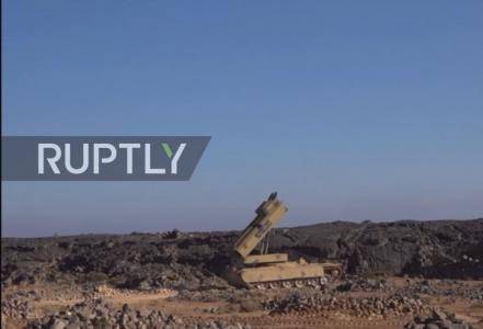 Уже известная тяжелая сирийская РСЗО 4-й танковой дивизии на вулканическом плато ас-Сафа где продолжаются тяжелые бои сирийских войск с укрепившимися там боевиками ИГ. Наконец-то появилось видео ее реального боевого применения.