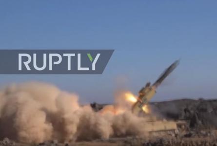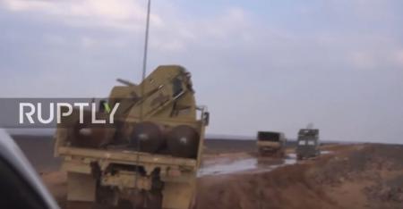 Troops were seen transporting infantry fighting vehicles, artillery and heavy equipment across the desert. At least one missile launcher was deployed in the co-ordinated assault, while several plumes of smoke could be seen rising in the distance.