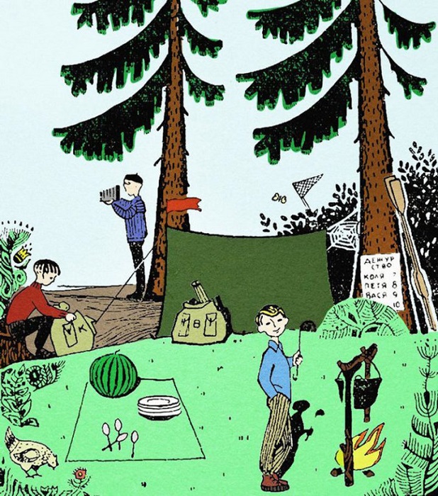 8. Коля (Вася - с фотоаппаратом - в его рюкзаке с буквой "В" лежит штатив, Петя - дежурный сейчас)