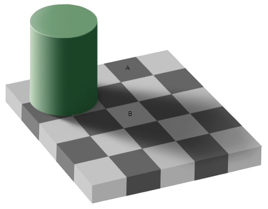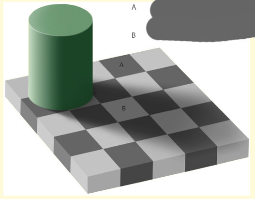 Отличаются ли цвета квадратов А и В?