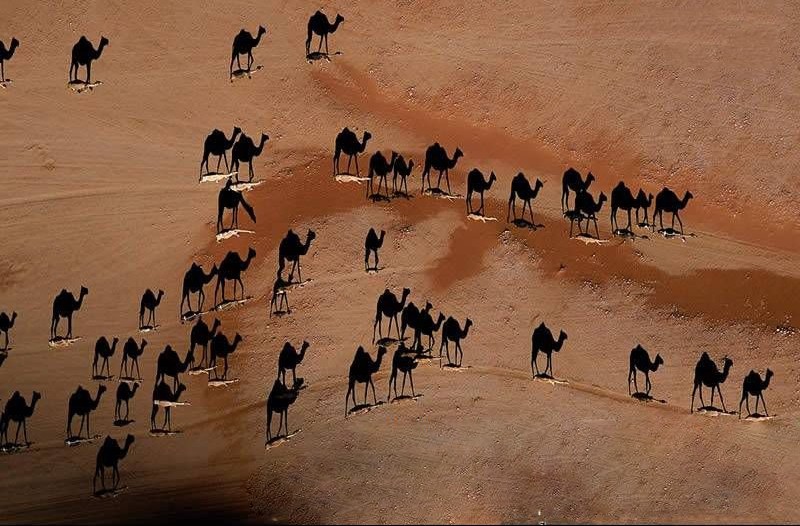 То, что вы видите, как верблюдов, на самом деле тени от них.