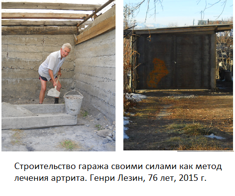Благодаря визиту к хорошему врачу у нас на даче появился капитальный гараж. А артроз левого плеча навсегда исчез без единой таблетки, укола и, тем более, поездки в Израиль. Исчез не сразу, а постепенно. Его отголоски замечаются иногда и сейчас, но совсем немного, практически незаметны, чуть-чуть только при крайне надуманных положениях руки. С тех пор каждый день, за редчайшим исключением, делаю кроме обычных ещё «суставные» упражнения, типа «почесать через голову правое ухо левой рукой».