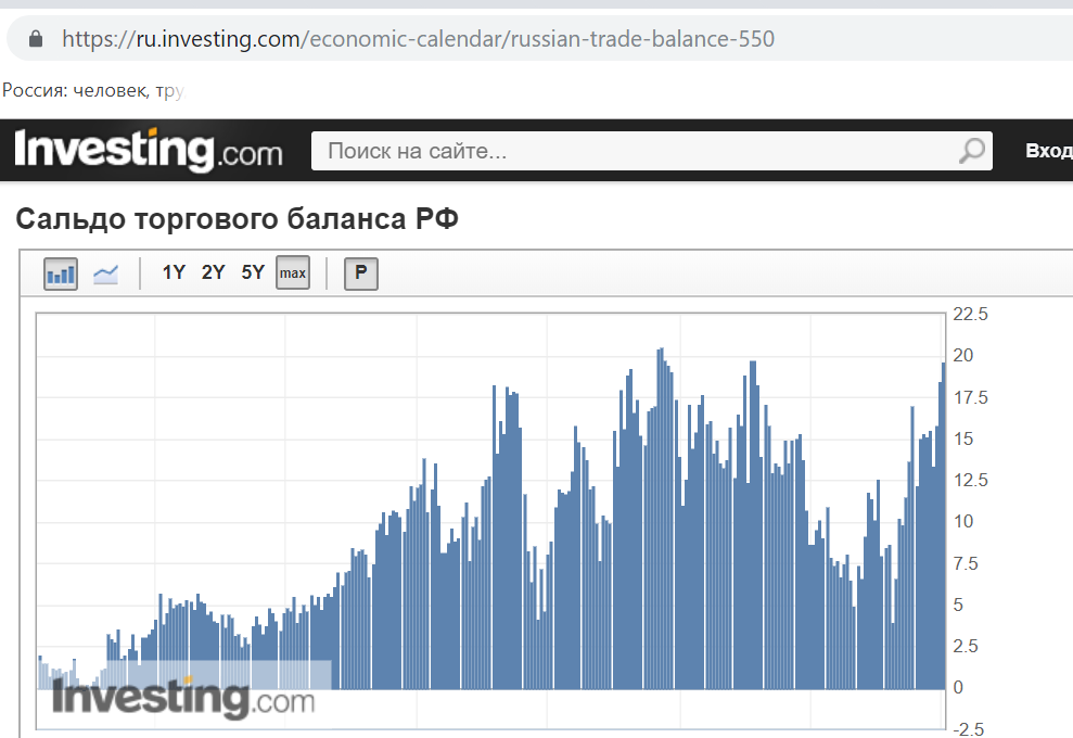 В 2018 году у России торговое сальдо что - то около 180 млрд долларов. Только один год.