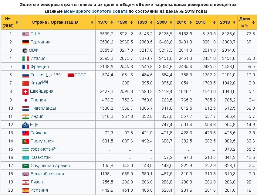При развитом позднем социализме, чьи зарплаты так любят вспоминать на АШ, с 1970-го по 1990-й произошло падение запасов золота с 1374 до 484 тонны. Это вам не "просрали полимер", а куда хуже: ни в ПМВ, ни в ВОВ такого не происходило. В нынешнее такое плохое капиталистическое время - рост до 2111 тонны. Надо полагать, чтобы алигархи смогли подороже продать Россию - куда дороже, чем коммунисты в 1970-90-м