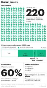 «Еврохим» выступил одним из потенциальных инвесторов проекта, предполагающего строительство 220 комплексов разной мощности по обработке, размещению и утилизации твердых коммунальных отходов (ТКО), говорится в презентации. Общая стоимость проекта — 290 млрд руб., из которых 180 млрд руб. привлекут от частных инвесторов (еще 110 млрд руб. — госинвестиции). Взамен компании обещают компенсировать до 30% затрат на строительство комплексов за счет льгот по кредитам и субсидирования лизинга оборудования.