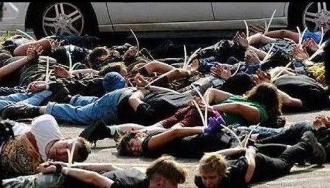 Обратите внимание на фотографию в обсуждаемой статье. Белые ленточки уже запасены и висят на уровне колена у одного из полицейских в шеренге.