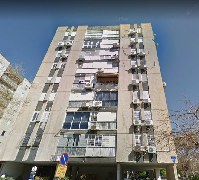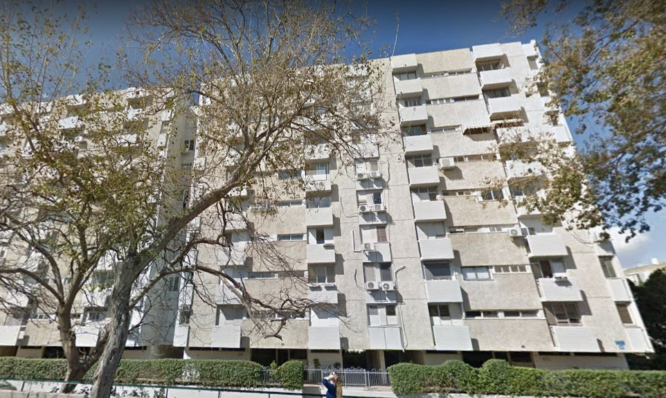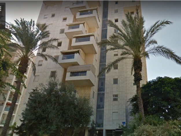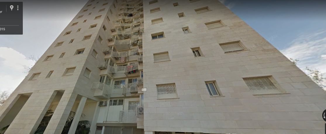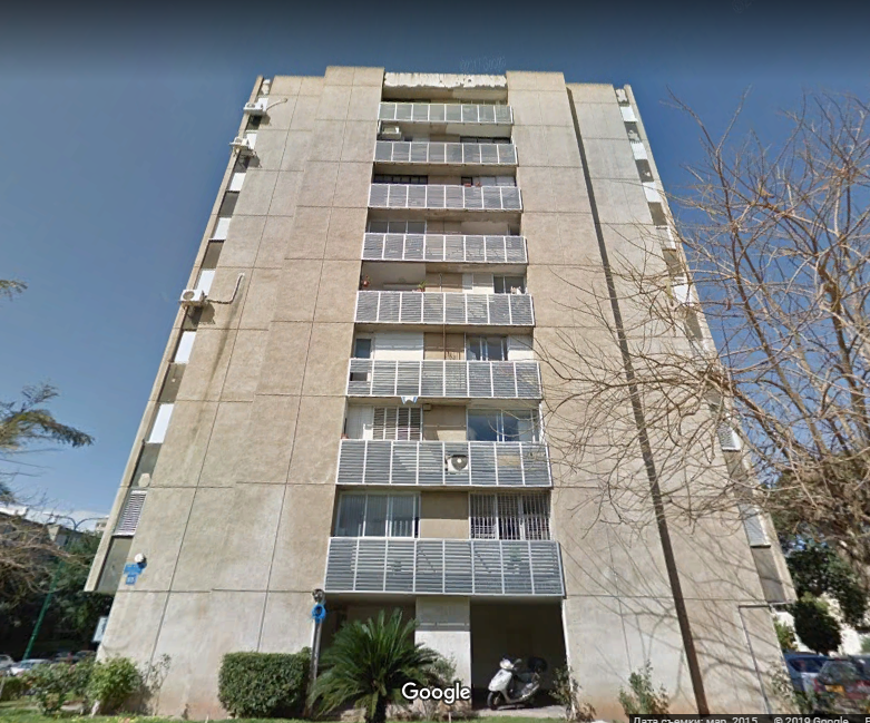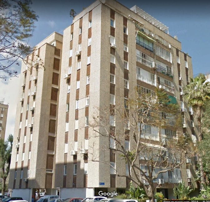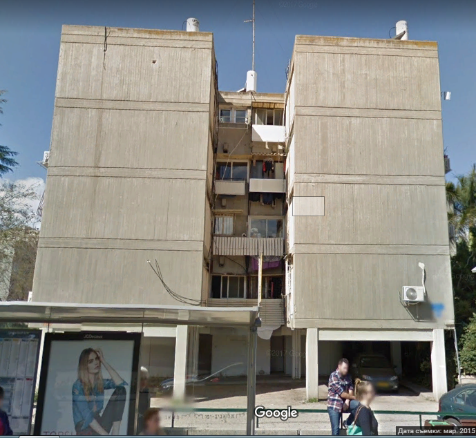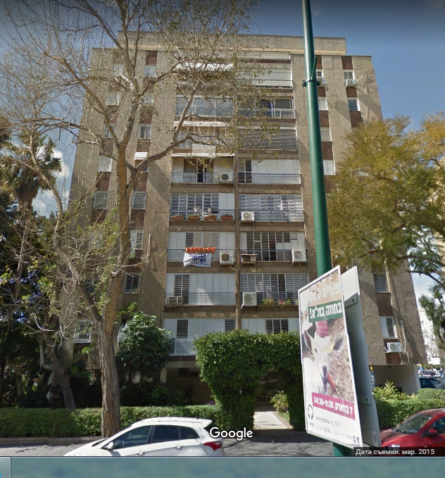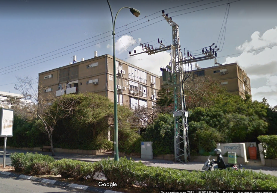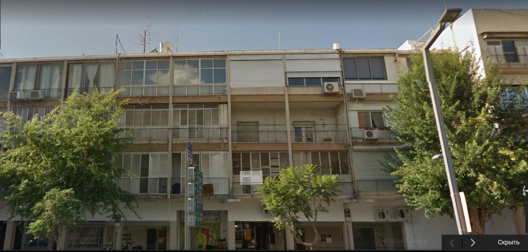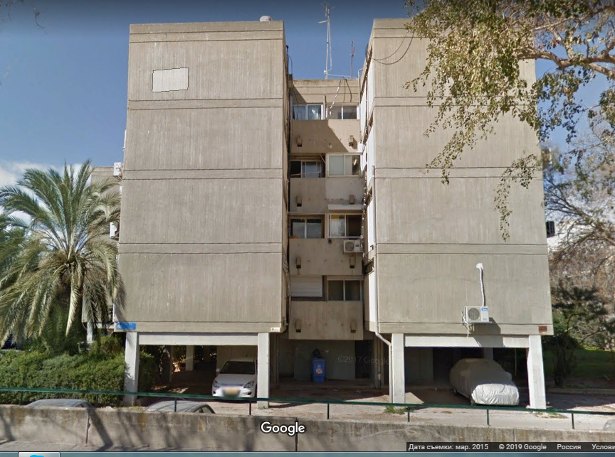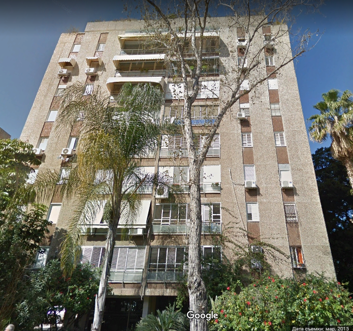 Далее Чаим Леванон пересекла перпендикулярная ему улица Тагоре и я смог глянуть на это здание с другой стороны. Тьфу ты черт, оно оказалось из той же серии, что и предыдущие, только развернутое на 90 градусов.