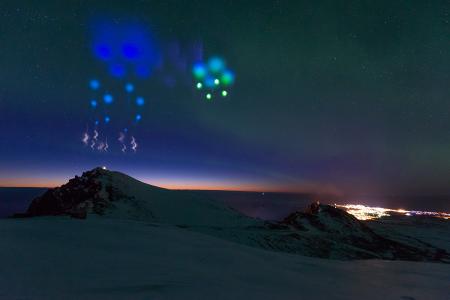 Прошедшей ночью в небе над Норвегией, Швецией и Мурманской областью можно было увидеть причудливые разноцветные огни на фоне полярного сияния. Из космического центра Аннёйа в Норвегии была запущена геофизическая ракета Black Brant 11, а ещё через две минуты — вторая. Каждая из них несла 24 канистры с триметилалюминием, смесью бария и стронция — эти же вещества используются в фейерверках. Емкости были отстрелены высоте 320 км и распылили химический индикатор.