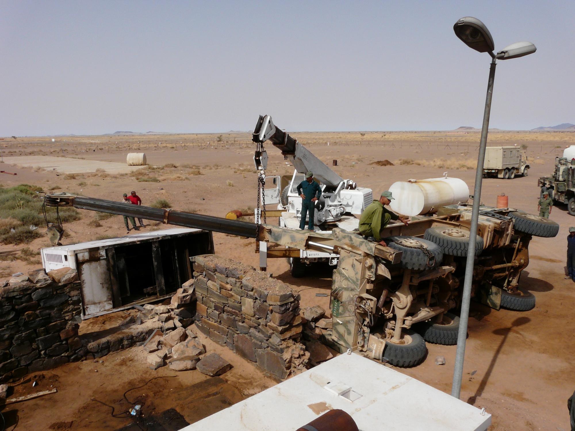 Помню один раз я был старшим патруля и лежал взорванный верблюд и сгоревший Лендровер (это было когда я первые полгода служил на стороне П0-ЛИСАРИО).И когда я это увидел, я остановил машину, а во второй машине ехал один полисариец.И я попросил Васю Пирожкова (он владел арабским языком) говорю — спроси у него что тут такое?