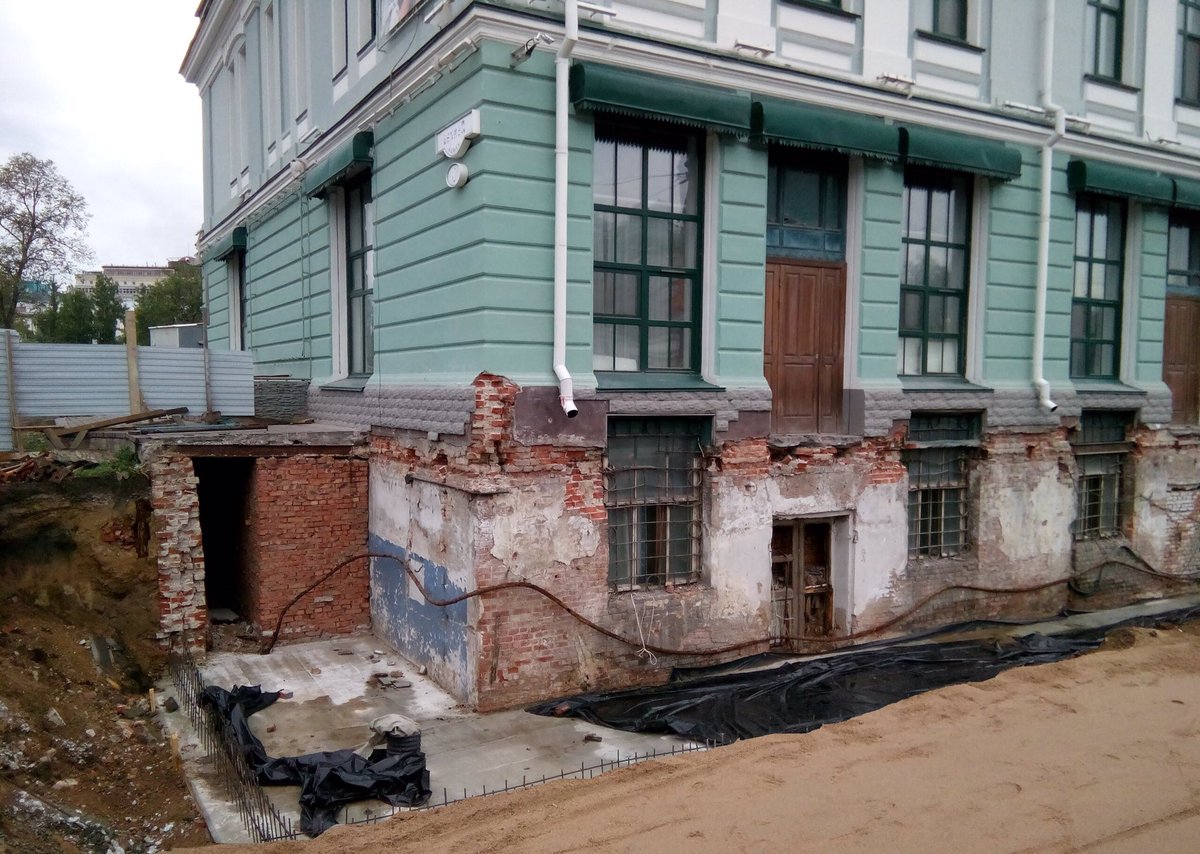 На нижнем снимке, похоже новый дом построен на 1 этаже старого, кладка, к сожалению, плохо видна, поэтому уверенно утверждать нельзя, зато размер окон говорит в пользу этой версии. Кстати довольно распространенная практика (надстроек), по крайне мере в исторической части Питера.