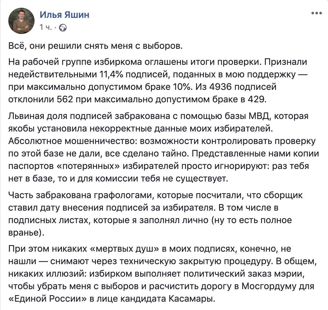 Я больше 4 лет нахожусь в активной политике, но такого унижения волонтеров, как в штабе Яшина, еще не видел нигде. Хотя опыт у меня огромный и успел много что повидать в той же президентской кампании Навального.