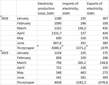 должен выглядеть так "полугодие 2019- 5032 ГВт*ч, 1 полугодие 2018- 5372 ГВт*ч.