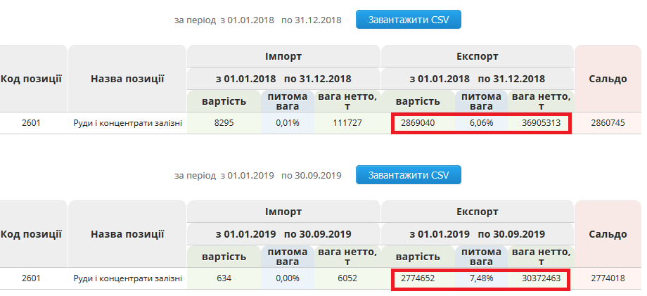 Рассмотрим несколько примеров. Если цены на украинскую пшеницу, согласно данным таможни в 2018 и 2019 (9 месяцев) были примерно одинаковыми – $183-184 за тонну, а на кукурузу $163 за тонну (общий экспорт в сумме $6,23 млрд за 9 месяцев 2019 года), то цены на руды выросли