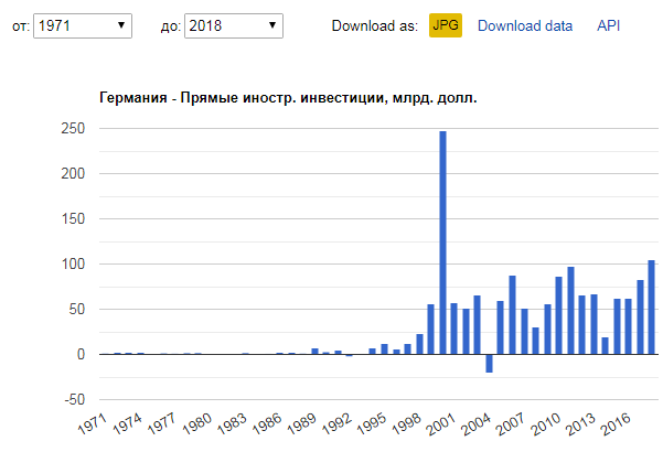 Германия: Прямые иностранные инвестиции, млрд. долл. США