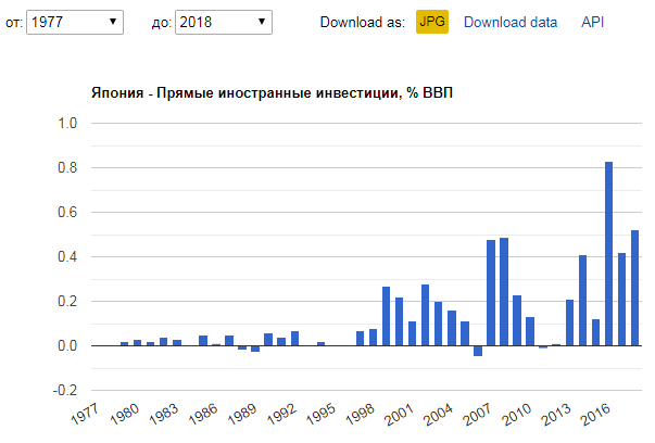 Япония: Прямые иностранные инвестиции, процент ВВП