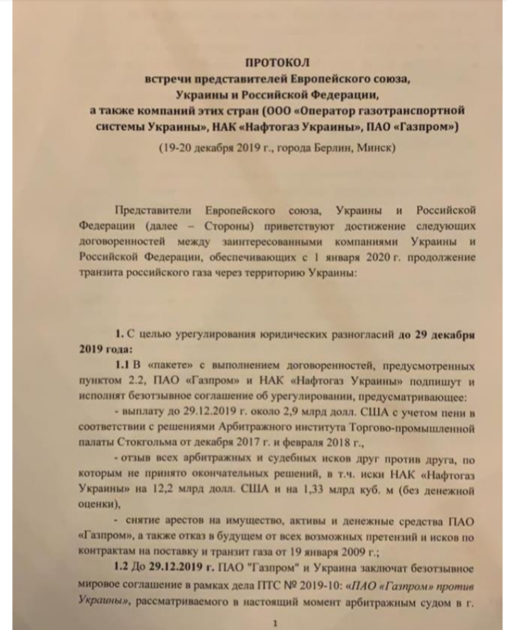 2. Почему Газпром подписывает протокол с Нафтогазом, на транзит в частности, когда известно, что с 01.01.2020 года Нафтогаз не будет являться стороной транзитного договора?