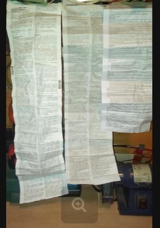 Три полотенца забитых мелким шрифтом. С двух сторон. Без лупы не прочесть. И без спец. образования не понять прочитанное. Для понимания масштаба простыней сфотал рядом с точилом. На котором могу заточить сверло 2 мм. Но этот сверхшрифт не могу разглядеть. Хотя замерял- каждая буква от 1 до 1.5 мм. (Букву разглядеть могу. С трудом. И даже слово прочесть. А вот в предложения они не складываются.)