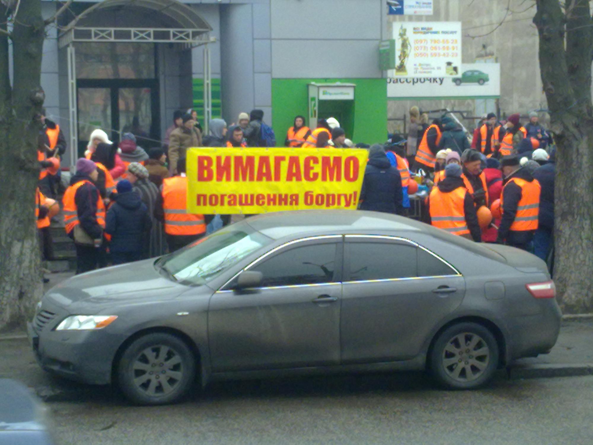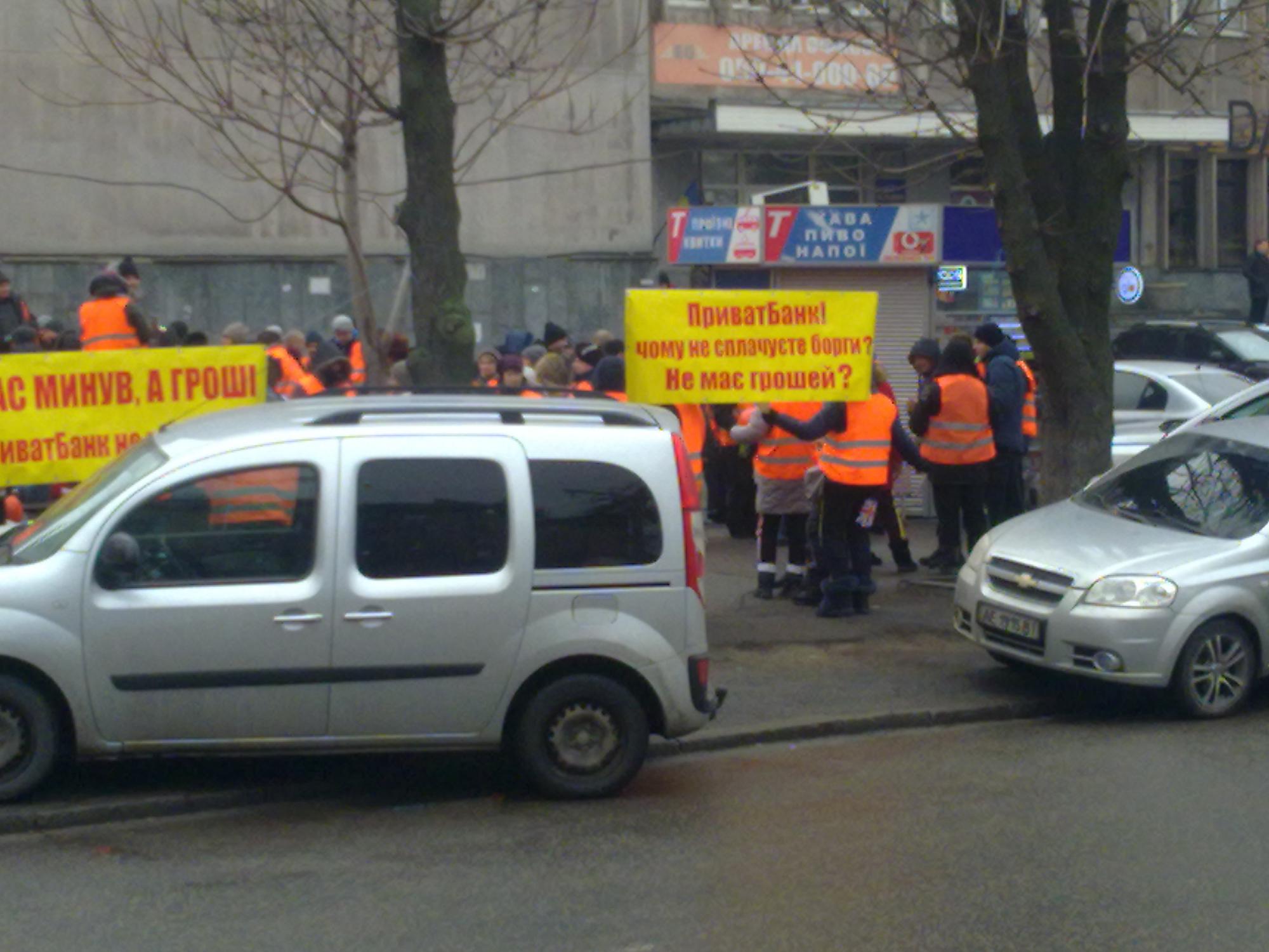 Банк Приватбанк. Это отделение на Пушкина. Между ул.Савченко. и ул. Шмидта. Организатор Коломойский. Акция типа процесс дискредитации Приватбанка под госуправлением.