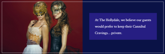 Основанный в 2015 году, The Hollydale является поставщиком самой прекрасной человеческой плоти, которую собирают в свежем виде только от самых привлекательных и доброжелательных доноров. Всё умело и благоговейно приготовлено шеф-поварами мирового класса.