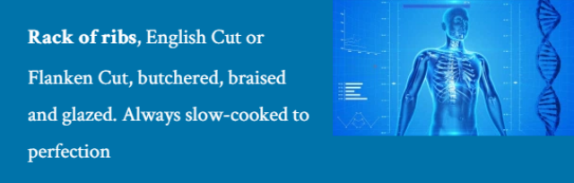 Стейк из ребрышек, английской огранки или фланкированной огранки, разделанный, тушеный и глазированный. Всегда медленно приготовленный до совершенства.