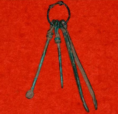 Также у греков и римлян зубочистки часто соединялись на одном кольце с ногтечисткой, пинцетом и ушной ложкой.