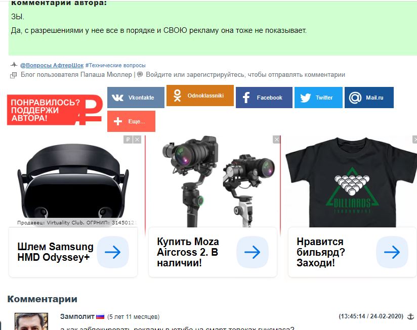 зы: а с НЕ телефона - ублок ориджн режет абсолютно всё и везде ! Смешно, но даже чтобы поделиться постом отсюда - с АШ, мне нужно его отключать. Ссылок соцсетей просто нет))