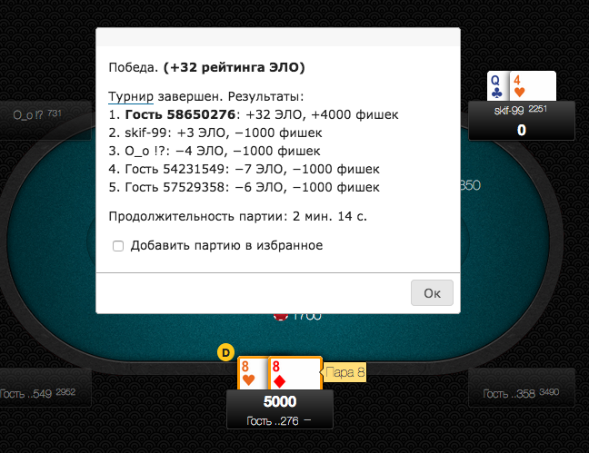 Люблю я это дело. В смысле покер. Раз в месяц собираемся со старыми друзьями раскинуть картишки по маленькому. Тыщща- полторы рублей денег. (На такси трачу столько. И на столько же съедаем-выпиваем.) Так что собираемся не для выигрыша, а для общения и азарта. Но всё-таки надо знать правила и моментально уметь прикидывать свои шансы. В связи с этим дам ссылку на тренажер, где играют с живыми людьми, но без денег. Игра без денег конечно ломает некоторые стандарты, но правила остаются теми же.