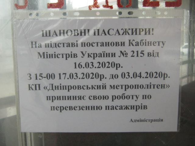 Технический перерыв в Приват Банке. Метрополитен закрыли тупо под предлогом карантина. Он убыточный для города в котором останавливается промпроизводство и туда-сюда бесплатно снуют одни пенсионеры. На рынок и обратно. Вообще то линия была задумана мимо городообразующих заводов. Но их позакрывали "эффективные собственники".
