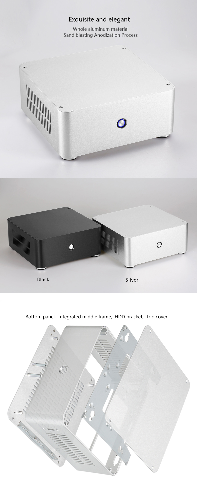 По корпусу был проведён смотр китайпрома и выбрана mini-itx модель Realan'a чёрного цвета. Его преимуществом стали вес - он литой - алюминиево-магниевый сплав (ну почти как у БМП :) и в перспективе возможность двусторонней компоновки.