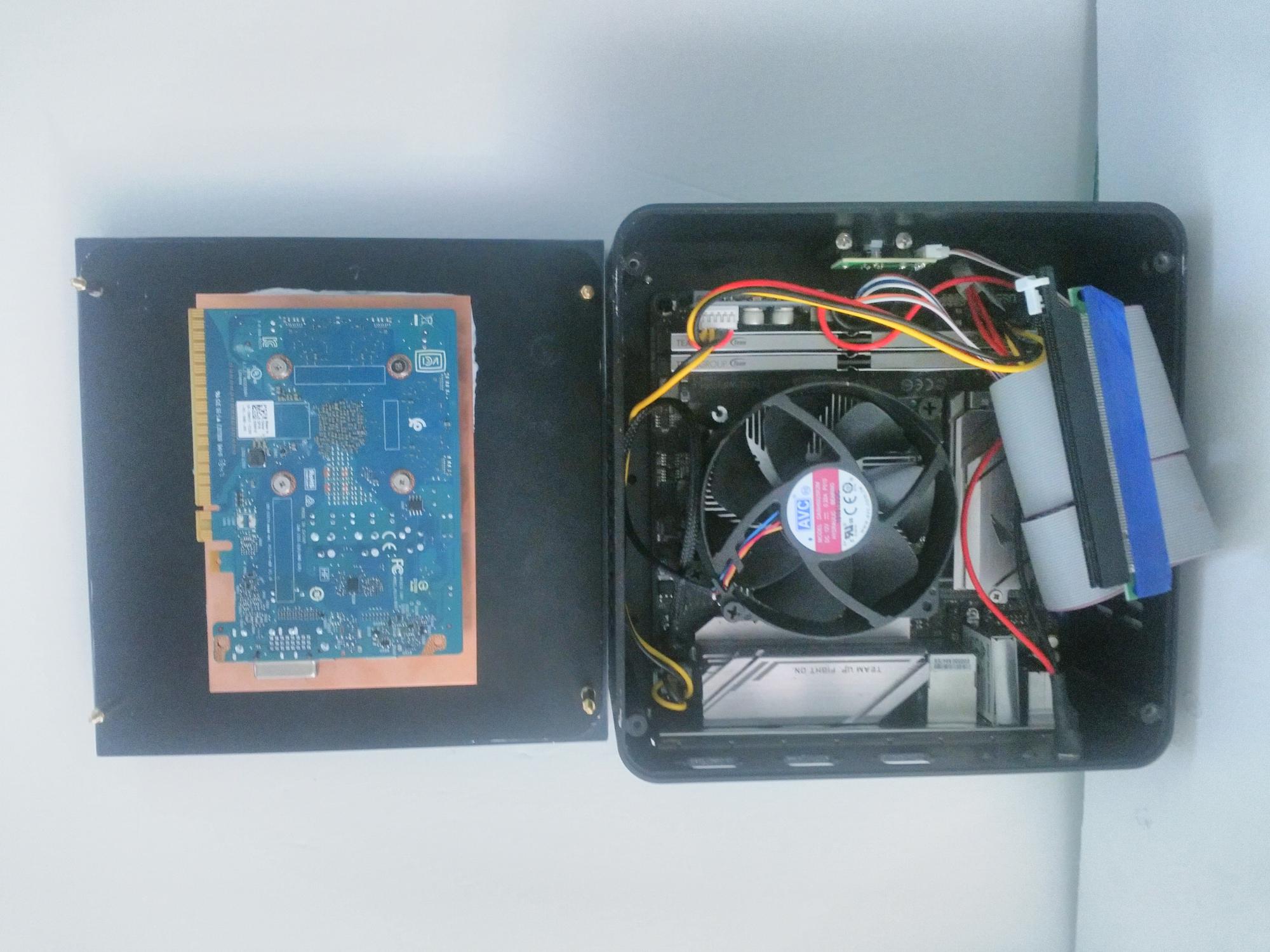 Раз мы минимизируем размер, то за стандарт был принят mini-itx формат материнской платы. Были рассмотрены и более экзотические мини-форматы, там тоже возможно построение полноценного компьютера на дискретном видео, но они несколько ммм... специфичны.