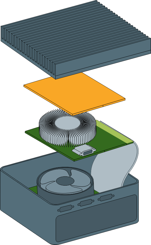 В предыдущих сериях мы рассматривали общие тенденции трансформации компоновки ПК для последующей оптимизации охлаждения. Сегодня мы рассмотрим конкретный пример реализации минимально возможного ПК с дискретной видеокартой с частично пассивным отводом тепла. С картинками.