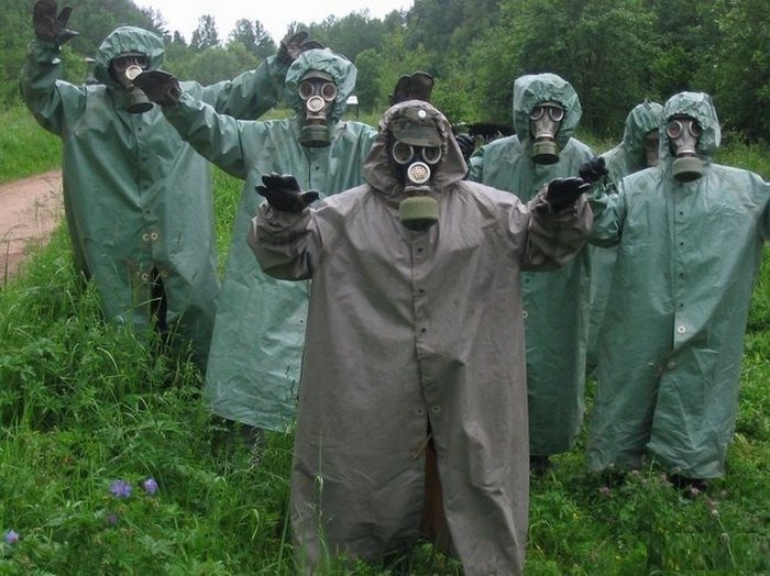 Применяют разное, в зависимости от задач. Немецкие маски более удобные, чем ЗМ, но значительно дороже. Противогаз раз в неделю, при работе с гадостью то-же приходится одевать. Поверх защитного костюма.