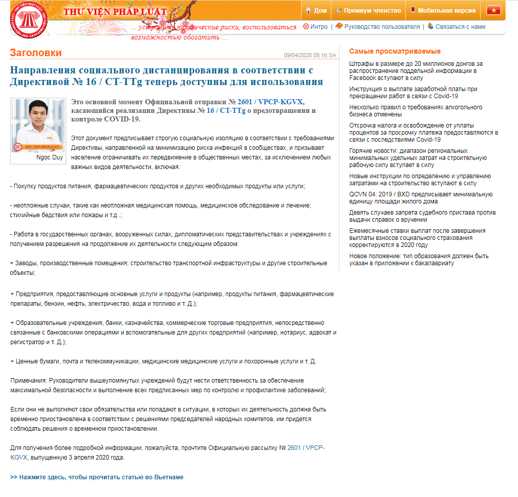 Журналисты забыли, что в мире существуют люди, которым во Вьетнам иногда надо не в море купаться - массажи - рестораны, а по делам. Вьетнам, если вы не знали, нефть добывает, ага. Так вот. Существует конкретное постановление премьер-министра Нгуена (это фамилия) за номером 16/CT-TTg от 31 марта 2020 года. Выложена на официальных сайтах Вьетнама в оригинале с подписями где надо. Всё полностью приводить не буду, кому надо, найдите сами, Гугл в помочь