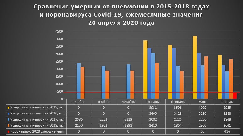 - 15,1% от среднего значения смертности от пневмонии за первые четыре месяца в 2015-2018 годах;