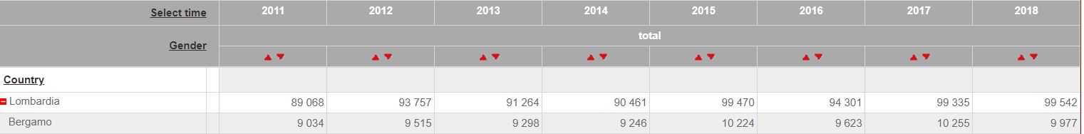 Или у вас глаза видят, но интеллект сопротивляется анализировать и понимать очевидное? смотреть тут там надо выбрать регион Lombardia и город Bergamo- comune Bergamo и также года которые вас интересуют