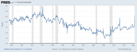 Попробую несколько подробнее изложить свою точку зрения. Это -отчет за март. Когда COVID ещё не так сильно вцепился в экономику США . Падение фондового рынка- было, признаки экономического криза-тоже. Но пандемичной истерики не было. Сумма в размере 10 % ВВП страны, осевшая за месяц на счетах граждан, не очень с этим сопоставима. Что косвенно подтверждает цифра по падению объема потребительского рынка, которая приведена в источнике ( 935 млрд. долларов). То есть то, о чем Вы пишете- это 43 % от прироста. Поэтому я предложил свою версию. В Вашем утверждении безусловно правда, но основное ли это?