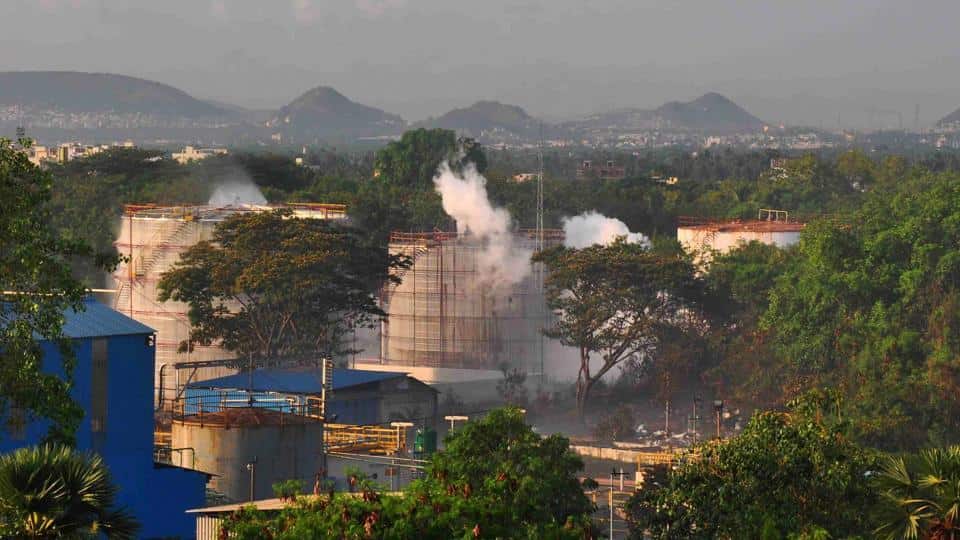 По словам Чанда, синтетический химический стирол просочился с завода LG Polymers, который рабочие подготавливали к работе после его закрытия во время карантина. Он рассказал, что утечка произошла после того, как вспыхнул пожар, который вскоре потушили. Около 1000 человек, находившиеся в районе 3 километров от завода, жаловались на проблемы с дыханием и жжение в глазах. 25 карет скорой помощи были задействованы в транспортировке пострадавших в больницы. Мина сообщил, что около 3000 человек были эвакуированы из деревни рядом с заводом. На фото с места происшествия можно увидеть людей, потерявших сознание в попытках бежать. По словам очевидца, имя которого не называется, область распространения газа охватила паника.