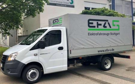 Компания из Штутгарта EFA-S закупает ГАЗели на российском заводе без двигателя, коробки передач и топливной системы и самостоятельно оснащает их электрической силовой установкой. EFA-S использует литий-фосфатные батареи нового поколения емкостью 80 кВт.ч, для которых не требуются никель и кобальт. Движущей силой экологически чистой версии является электромотор мощностью 110 кВт (150 л.с.) и крутящим моментом 730 Нм.