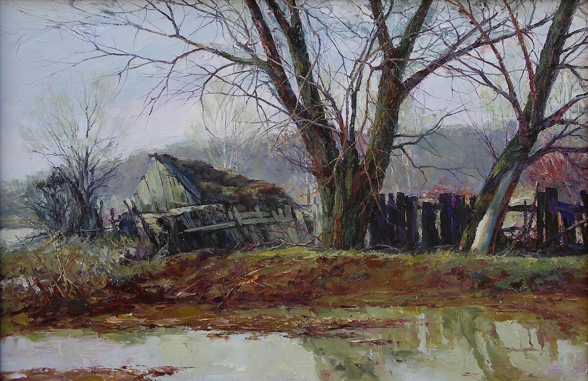 Хорошие картины. Хорошо рисует лица. Очень хорошо передаëт особенность татарских лиц. Все персонажи естественны и часто видены. А пейзажи необычные. Традиционно рисуют приятные глазу виды. Этот рисует то, что на глаза попалось) )