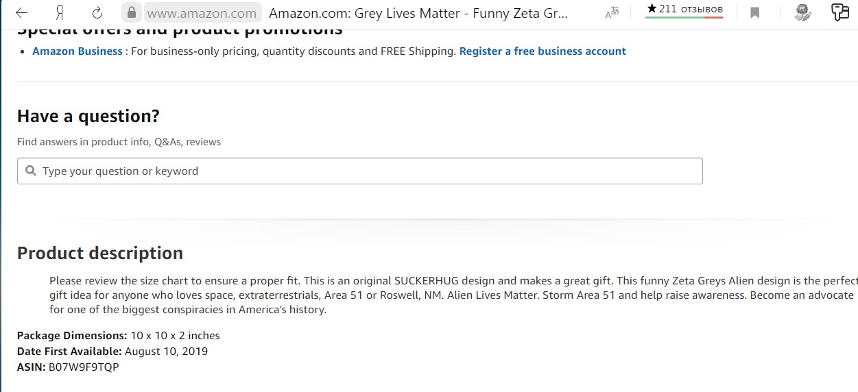 Я обнаружил лозунг Grey Lives Matter в глубинах интернета: его хронотоп — август-сентябрь 2019 года, когда неожиданно в Сети возникла инициатива по штурму пресловутой Зоны 51, где, якобы, томятся пришельцы, плененные ЦРУ/ФБР. Судите сами. Вот образцы одежды с этим лозунгом (тут только маечка, но вариантов много — погуглите, — адрес не помещаю, чтоб не рекламить):