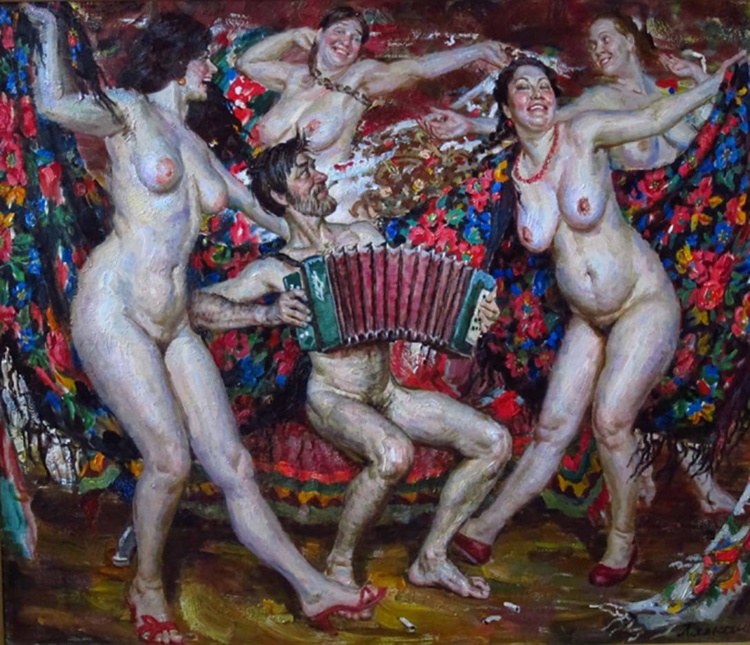 Эти картины не брали на выставки во времена СССР, а зарубежная публика им просто рукоплескала. Дамы на его картинах, в основном, обладают вызывающе пышными формами и изображены, иногда, совсем не в целомудренных позах (без паники! В этой галерее дамы держат себя в руках, но детям до 18 – лучше не смотреть).